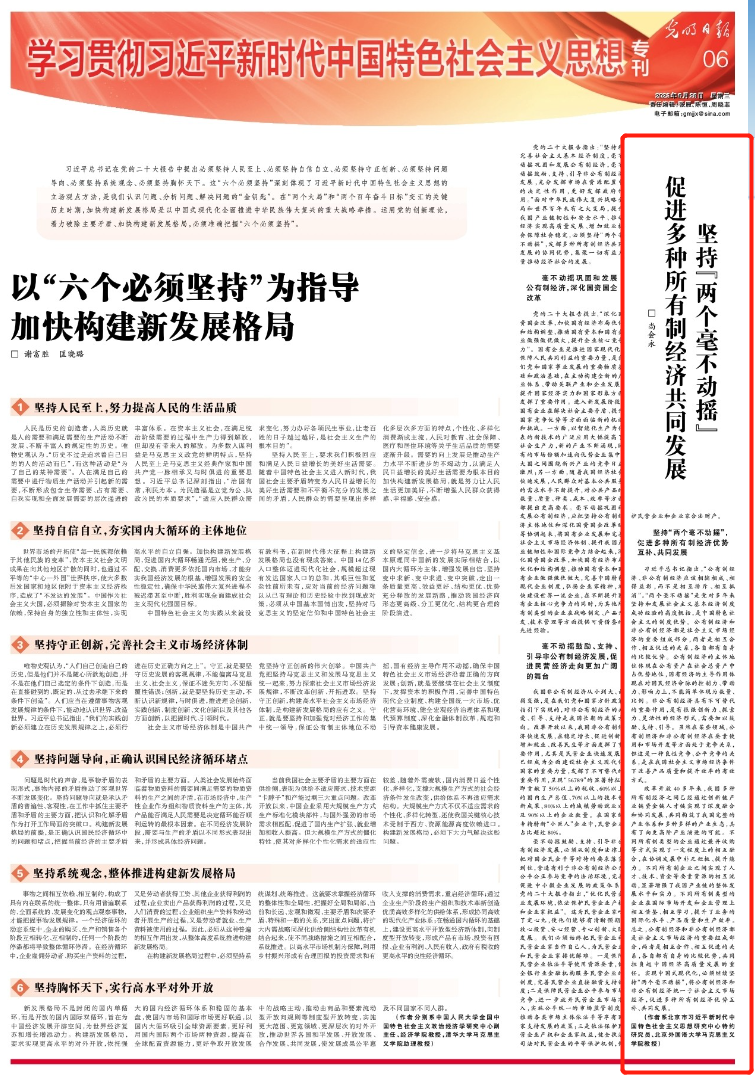6月28日,《光明日报》刊登BB贝博艾弗森官网教授尚会永的文章:《坚持“两个毫不动摇” 促进多种所有制经济共同发展》。