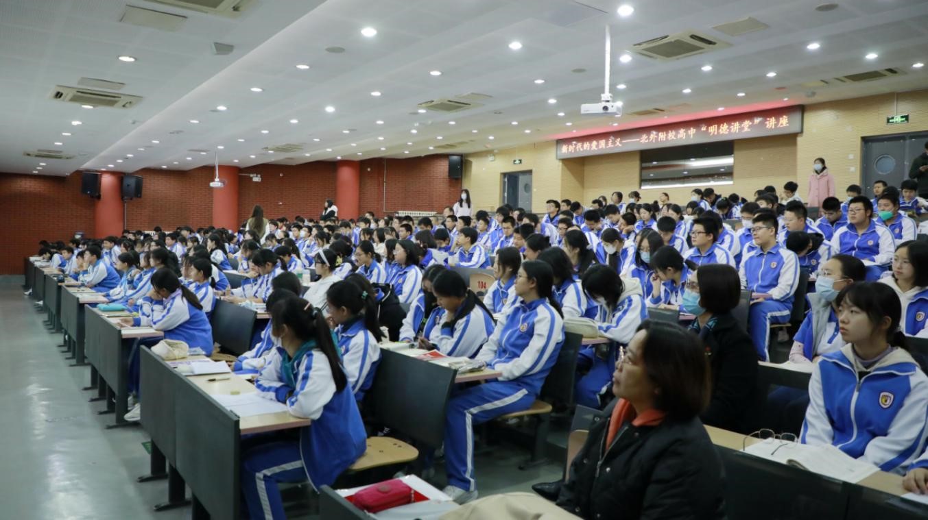 为贯彻落实党的二十大关于 “用社会主义核心价值观铸魂育人,完善思想政治工作体系,推进大中小学思想政治教育一体化建设”的精神,BB贝博BB贝博艾弗森官网教师刘菁于2023年11月9日下午,赴BB贝博艾弗森官网附属外国语学校,与附校高中德育处、思政教学一体化课题组联合举办了一场主体为“新时代爱国主义”的讲座。