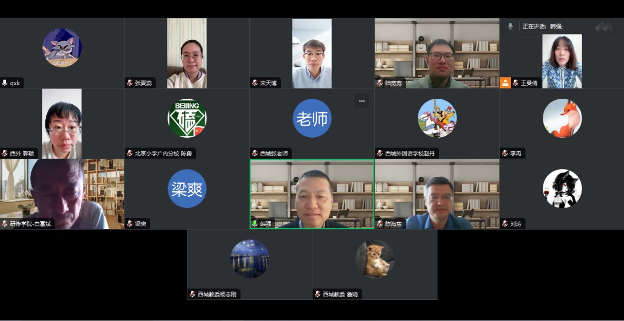 近日,为推动实践教学基地建设工作开展,由北外马院牵头建设的北京市“大思政课”综合改革试验区西城区区校共同体召开了首次建设会议。中共北京市委教育工委宣教处陆宽宽、西城区教委副主任陈海东、西城区中小学和BB贝博艾弗森官网、中央民族大学马院教师代表参加会议。会议由BB贝博艾弗森官网院长、西城区区校共同体工作组组长韩强主持。