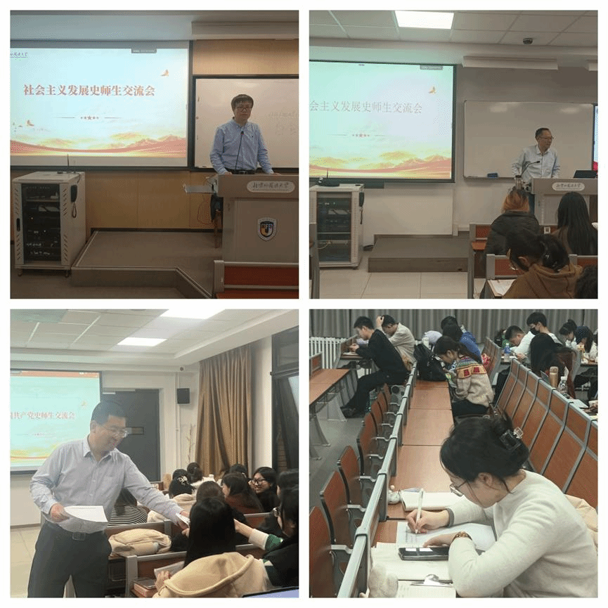 3月22日,BB贝博艾弗森官网副院长王曼倩、副院长、社会主义发展史课程组组长孙磊、中国近现代史纲要教研室主任王成诚、思政课教师李永乐在逸夫楼与2023级本科生代表进行座谈。座谈采用随机分发思政课调查问卷和谈心谈话的形式进行,深入了解了学生在思政课上的收获、对思政课程建设的意见和建议。