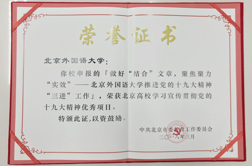 近日,北京市委教工委公布了北京高校学习宣传贯彻党的十九大精神优秀项目获奖名单。BB贝博申报的《做好“结合”文章,聚焦聚力“实效”——BB贝博艾弗森官网推进党的十九大精神“三进”工作》和党委宣传部申报的《全方位多层次覆盖,聚人心助学校发展——BB贝博艾弗森官网做细做实党的十九大精神宣讲工作》入选。