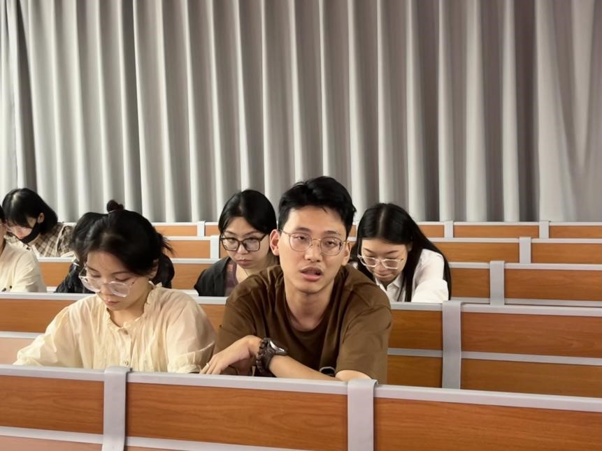 2022级硕士研究生、入党积极分子谢永达以思想和实践两个层面为切入点进行发言。谢永达表示,作为入党积极分子,要始终保持与学院站位统一,积极参与学院活动;要培养政治觉悟,自觉与党统一战线;要树立理论思维,多阅读马恩原著,打好理论基础。在实践层面,要始终坚持理论联系实际,将理论应用到实践中,自觉践行马克思主义。
